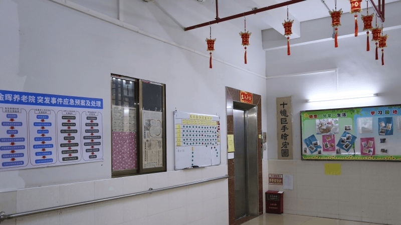 金晖养老院总建筑面积达8000平方米,以岭南四合院风格为核心设计理念,保留了西关特色的满洲窗、趟栊门等元素,尽显本土文化底蕴。院区绿化覆盖率高达40%,300平方米的户外花园内种植着白玉兰、九里香等本土植物,四季常青、花开不断。蜿蜒的无障碍步道穿梭于绿意之间,连接着散步长廊、适老化健身器材区与小巧的鱼池景观,为长者提供了亲近自然、舒展身心的专属空间。