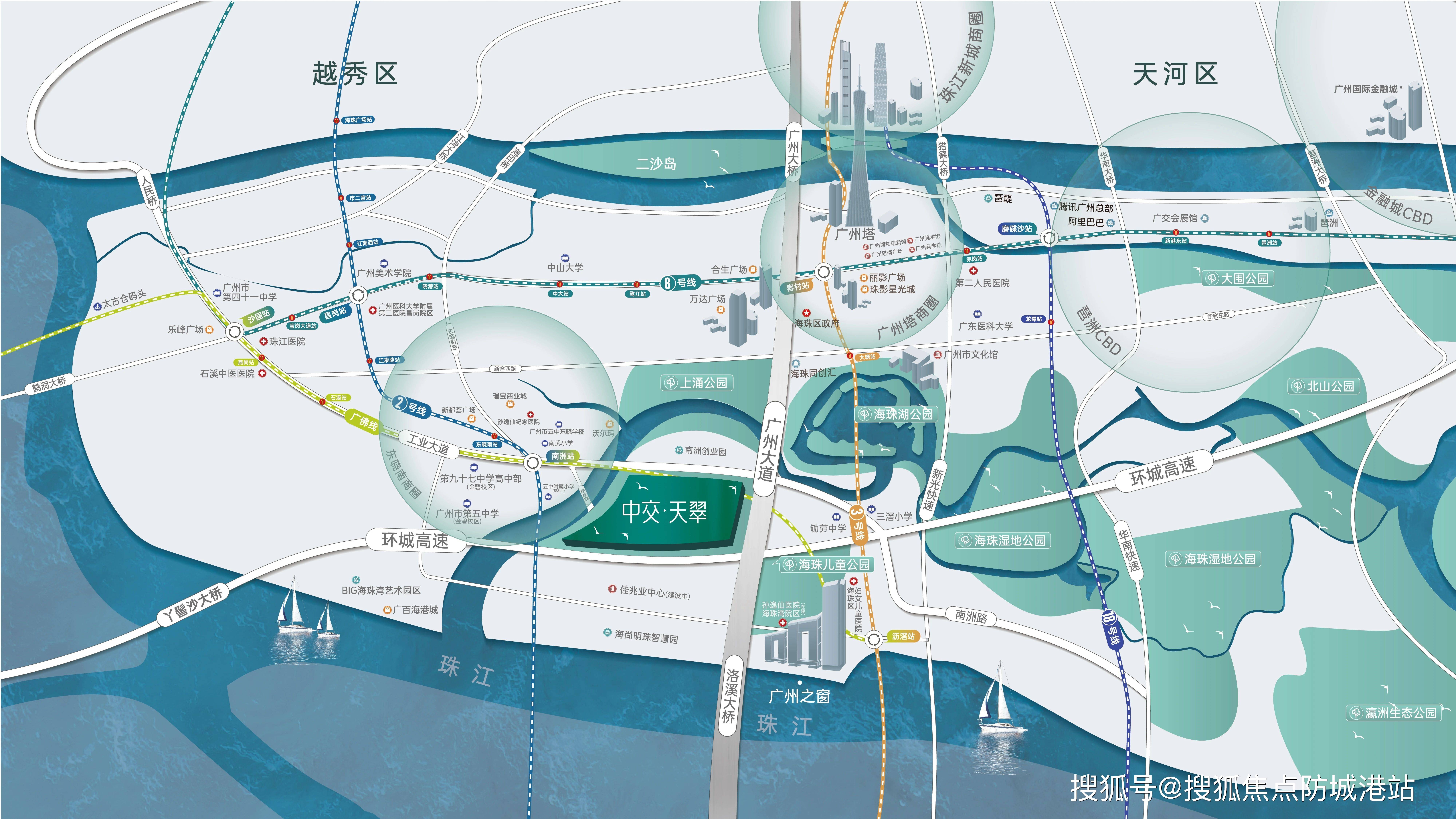 广州海珠区作为广州核心城区,土地资源极度稀缺,尤其是城芯板块,新增住宅用地屈指可数,地段价值不可复制。中交·天翠坐落于广州大道南核心板块,地处城市黄金中轴南端双台核芯区域,是海珠主城核心区难得的大体量公园住区,地理位置得天独厚。
