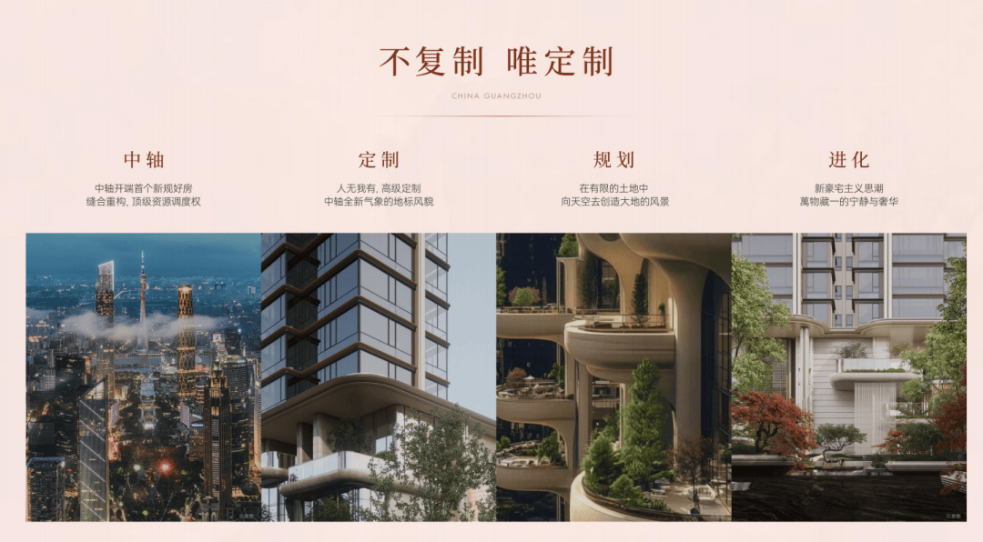 高定之赋,革创首著,以向天空垂直生长的新豪宅主义思潮,中轴新规纯板住区,为广州再开元。